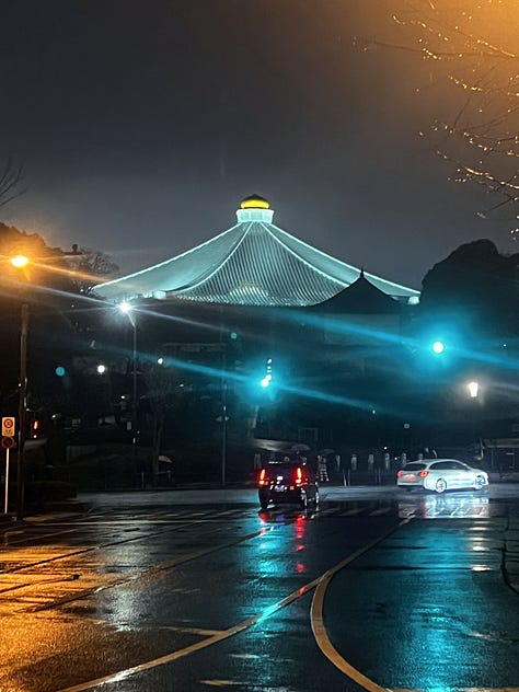 Az első képen érdemes megfigyelni a közlekedési lámpa zöld fényét a Budokan melletti kereszteződésben, ami nem is annyira igazi zöld, mint amit megszoktunk. (RGB: #00AFAD) Ebben a hírlevélben olvashatsz róla részletesen.