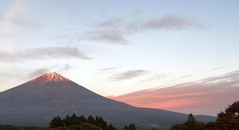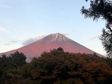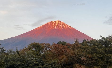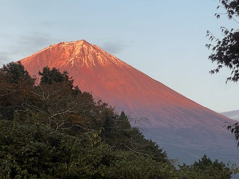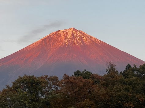 Eddig sem hagytunk titeket Fujisan nélkül, de így a hírlevél végén nézzük meg újra! A naplemente idején percről-percre változott a színe. Hokusai mester nem véletlenül festette vörösnek.