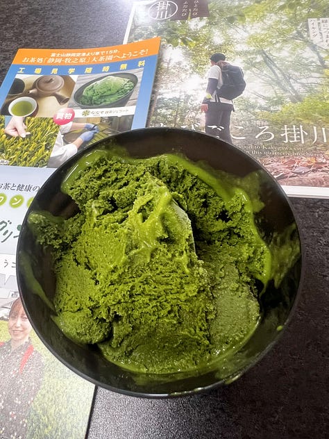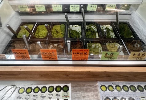 Vasárnap közelről is megnéztünk egy teaültetvényt, majd beugrottunk a szomszédos látogatóközpontba. Itt először a zöldtea-termesztés történetével ismertették meg a vendégeket, majd régi gépeket láthattunk működés közben. A kiállítás végén az ajándékbolt sem maradhatott ki, ahol igazi ínyencségek sorakoztak. A különböző intenzitású kesernyés matchafagylaltok mellett palackozott „craft-teákat” is kínáltak. Azonnal beindult a fantáziám.