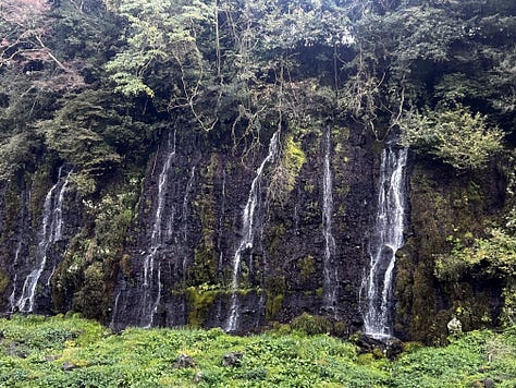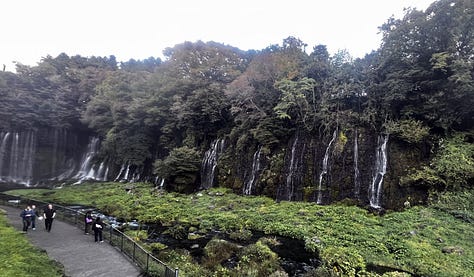 Vajon miért fotóztam le ezt a vízesést ilyen sokszor? Azért, mert egyedülállóan különleges. Itt nem egy folyó vize zuhan alá, hanem a Fujisan oldalából szivárgó hatalmas mennyiségű talajvíz tör elő a bazaltos-andezites lávarepedések közül. A lávafolyások réteges felépítése miatt a víz száznál is több vékony „selyemfonal” formájában bukik le a kb. 20 méter magas sziklafal közepéből. Úgy is mondhatnánk, hogy a vízesés maga valójában egy hatalmas karsztforrás, csak nem mészkőben, hanem a porózus, repedezett vulkáni kőzetben. (geológiai oximoron)