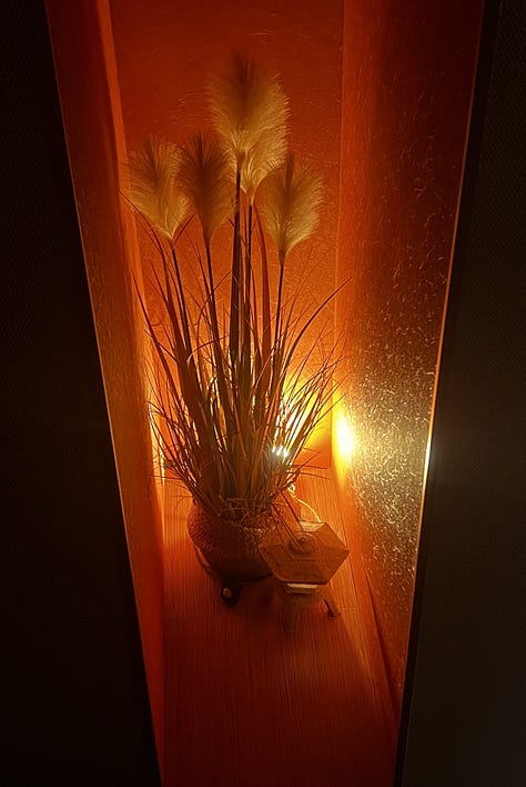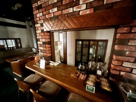 A hatórás vezetés után késő este elindultunk vacsorát keresni, de a kihalt épületben addigra már minden bezárt. Mit tehettünk? A tatamis ryokanban megittunk néhány pohár szakét, amihez teljesen stílustalanul valamilyen kiváló spanyol sajtot ettünk, amit október közepén Misi vitt Santanderből Pestre, majd Csilla kihozott Japánba. A szaké-vacsora után azt próbáltuk megfejteni, miért tűnik ez az egész helyszín annyira ismerősnek. A hotel kísértetkastély-szerű berendezésére valószínűleg David Lynch munkássága gyakorolt hatást. Amikor éjfél előtt elkezdtük az épület felfedezését, a folyosókon kóborolva egyszer csak halk jazz szűrődött ki a sötét biliárdszalon felől. Benyitottunk, de csak a CD-lejátszó kis fénye világított, minden félhomályban lebegett. Később mindent alaposan megvizsgáltunk, a társalgót, a recepciós pultot, sejtelmes fényekkel Halloween hangulatot árasztó kihalt játékbarlangot, és végül a “simple” konyhát. Tényleg úgy éreztük magunkat, mint Cooper ügynök, amikor megérkezett Twin Peaksbe.