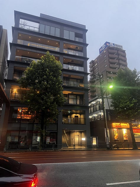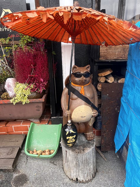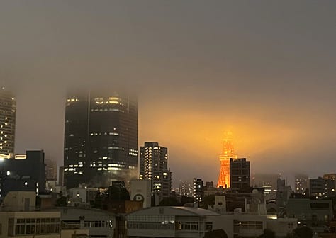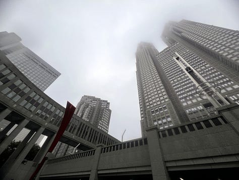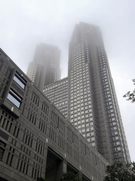 Másnap tettünk egy „szokásos kör” nevű tokiói túrát: felidéztük, amikor tavaly nyáron Misivel majdnem minden szombaton a tokiói Cervantes Intézetbe utaztunk. Nosztalgikus városi túránk hagyományos megállója délben a Shinpachi Shokudo izakaya volt. A még mindig csöpörgő esőben elsétáltunk a sokat ígérő „Little Paris” negyedbe, Iidabashi környékén, ami csak annyira juttatja az ember eszébe Párizst, mint mondjuk a Széll Kálmán tér az orosz fővárost. Délután tovább bóklásztunk Shinjukuben, és fel akartunk jutni a tokiói városháza tetején lévő kilátóponthoz, de a tornyokat már az utcáról sem lehetett látni a borús idő miatt. Így aztán logikus, hogy a felhőkarcoló tetején mi is csak a tejfehér ködöt nézegettük az egyébként páratlanul izgalmas kilátás helyett. Ez után következett a Balaton Café Omote-Sando metrómegállónál, majd Fushi Misi professzor laboratóriuma (Nishi-Azabu 13-14.) felé vettük az irányt, végül a közelben lévő Gonpachi érintésével fejeztük be vasárnapi túránkat a világ legnagyobb metropoliszában. Ez alkalommal alig húsz kilométert gyalogoltunk, ami egy átlagos tokiói turista napi adagjának csak a kétharmada.