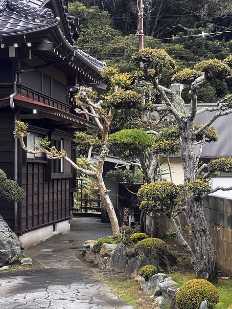 Az egyetemi őszi negyedév végéhez közeledve elhatároztuk, hogy két hétvégét is a felelőtlen kiruccanásoknak fogjuk szentelni. Első alkalommal ellátogattunk a Boso-félsziget elhagyatott rejtett kincséhez, Ubarába, ahol idén már kétszer is jártam. Az álmos kis faluban a szemerkélő esővel kezdetben nem nagyon törődtünk, de aztán ahogy az óceán partján egyre erősebb szél fújt, és a bőrigázást kockáztattuk volna, beültünk egy „edén” (sic!) nevű partmenti étterembe, hogy kagylós tésztával, majd matchás teákkal kényeztessük magunkat. Az eső továbbra sem akart elállni, de végül koraeste azzal a jóleső érzéssel távoztunk a faluból, hogy sikerült az unalmas gumyoi világvége hangulatunkat Ubara-környéki világvége hangulatra cserélnünk.