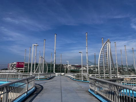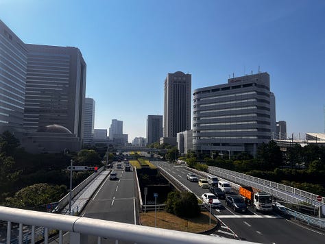 Korán keltem, hogy megreggelizzek, és a 6:57-es vonatot kényelmesen elérjem. Ez csatlakozás nélkül megy Tokió állomásra, reggel zsúfolva van ingázókkal. Chiba és Tokió között található Kaihimmakuhari, egy nagyon modern szigorúan tervezett városrész, széles utcákkal, nemzetközi vásárközponttal, izgalmasnak gondolt, de valójában jellegtelen 40 emeletes dobozházakkal és rendezett parkokkal. A hivatal negyedórás sétára van az állomástól. Az épület környékén autóvezetők számára épített közlekedési park, afféle gyakorlópálya is található gyalogátkelőkkel, közlekedési táblákkal, lámpákkal, sőt, még hamis vasúti átkelőt is építettek a gyakorlati vizsgázóknak.