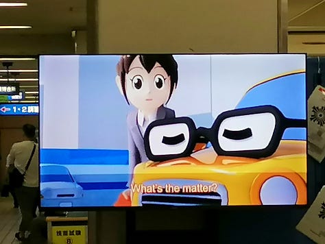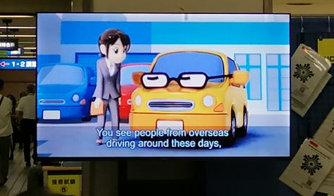 Óriási teremben foglaltam helyet a többi várakozóval. Az ügyfélszolgálati ablakok mögött zakatolt a japán ügyintézés. Szinte érezhető volt, hogy minden adatomat alaposan ellenőrzik, majd felviszik a nyilvántartásba. A többiek álmosan meredtek maguk elé, néhányan nyomkodták a telefonjukat, páran elbóbiskoltak, de a legedzettebbek egy végtelenített 8-10 perces oktatóvideót néztek, amely Japán izgalmas közlekedési sajátosságaira és a veszélyforrásokra hívta fel a figyelmet. Várakozás közben valószínűleg többször is végignéztem, mint amennyit a kis szürke agysejtjeim még büntetlenül elbírtak volna; egy idő után már kívülről tudtam, hogy mi következik. A japán nyelvű furcsa közlekedési táblákat már álmomban is fel tudnám idézni. A legemlékezetesebb jelenetben egy színész mutatta be, mi történik, ha valaki egy sör után autóba ül. A következmények – baleset, rendőri intézkedés, jogi következmények – elég egyértelműek voltak, még úgy is, hogy az angol felirat inkább nyelvtani, mint stilisztikai bravúrokkal élt.
