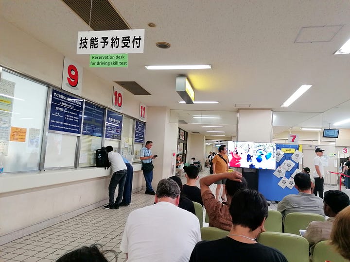 Ez a pont volt az utolsó akadály, legalábbis azok számára, akik olyan ország állampolgárai, amelyekkel Japán kétoldalú megállapodást kötött a jogosítványok kölcsönös elismeréséről. Magyarország ebbe a szűkebb körbe tartozik, akárcsak a legtöbb EU-s ország, valamint Svájc, Norvégia, Dél-Korea és Kanada. Nekünk elég a sok papír és a látásvizsgálat. Az amerikai jelentkezőknek – államtól függően – már külön írásbeli vizsgán is helyt kell állniuk. Az ausztrál család, akikkel várakozás közben sokat beszélgettem, szintén egyszerűsített eljárásban vettek részt.