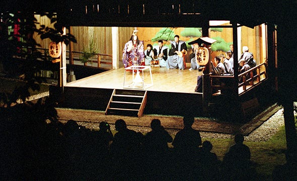 Most persze jogosan merül fel benned a kérdés, nyájas olvasó: hogy lehet, hogy ez a furcsa, lassú és – valljuk be – számunkra teljesen dekódolhatatlan előadásforma évszázadok óta létezik, virágzott, sőt, még a szamurájok is ezt nézték, amikor épp nem háborúztak? Sejtelmem sincs, biztosan hosszú út vezetett idáig. Persze nem nehéz ennek utánanézni. Néhány rövid bekezdésben összefoglalom, amit találtam. Ha ennél részletesebben érdekel a hagyományos japán színház, akkor úgyis utánaolvasol a szakirodalomban.