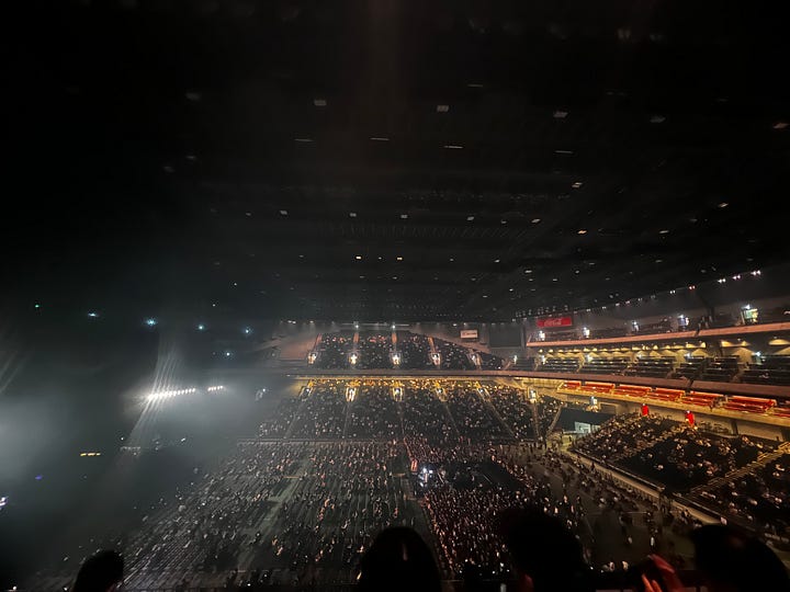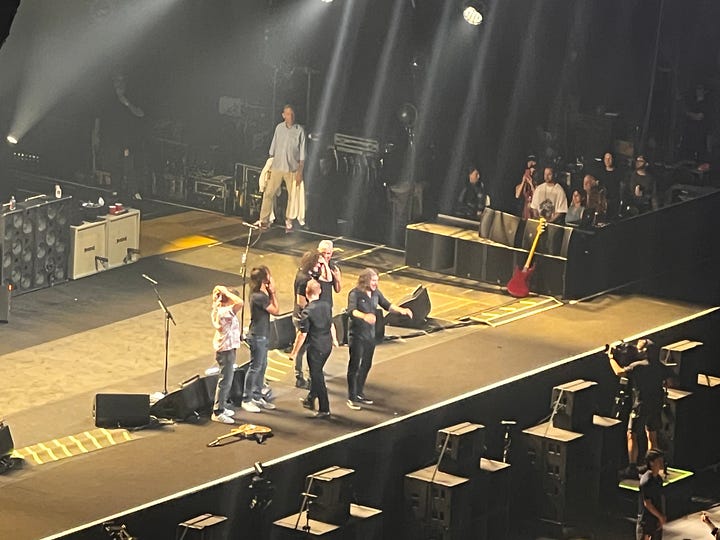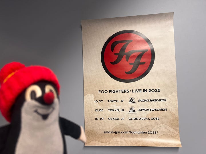 A srácok – erősen ötven-pluszos bácsik –, becsülettel eljátszották az összes dalt, amit még én is ismertem, Grohl pedig hosszú átkötő szövegekkel tartotta életben a közönséget. Egy ponton felidézte, milyen régen is járt legutóbb Japánban, és nosztalgikusan megemlítette a kedvenc japán bandáit. És itt jött a pillanat, amikor tényleg felnevettem: pontosan azokat a zenekarokat sorolta, amelyeket én is ajánlottam nemrég a huszonegyedik hírlevélben: Guitar Wolf, MAD3 és a Shonen Knife, más néven az Osaka Ramones. Ott ültem a lelátón, és úgy éreztem, hogy Dave Grohl és én egy hullámhosszon vagyunk. Csak ő a világ egyik legnagyobb arénájában hirdeti ugyanezt, én pedig Fushi Misi professzorként ebben a Substack-hírfolyamban.