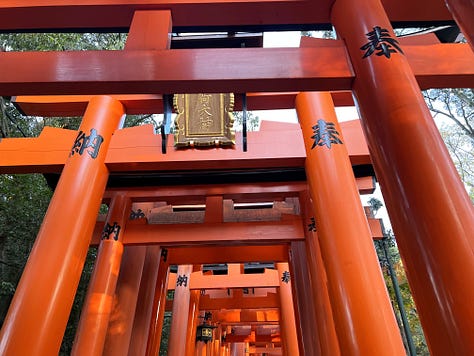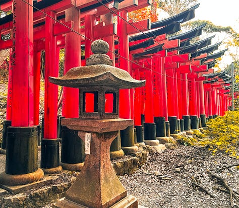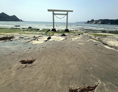 Torii 鳥居 - Kiotóban, Ubarában az óceán partján, és a tömbházak között